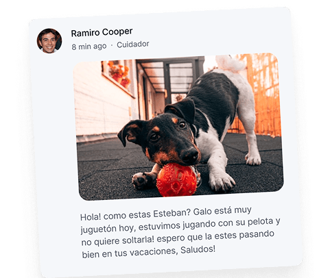 Get real-time updates about how your dog is doing, what they're up to, and how their day is going. We know it feels like leaving your own kid.